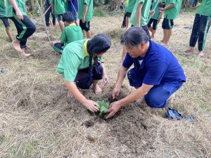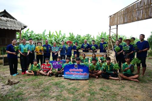 ขยายผลการน้อมนำหลักปรัชญาของเศรษฐกิจพอเพียงสู่ครัวเรือนโดยรอบ โดยมีการแบ่งปันเมล็ดพันธุ์ผัก พันธุ์ต้นกล้า เพื่อเป็นการสร้างความมั่นคงทางอาหารให้กับโรงเรียนในชุมชน ณ ศูนย์เรียนรู้ทฤษฏีใหม่ประยุกต์สู่ “โคก หนอง นา” หมู่ที่ 2 บ้านหนองชุมเห็ด เจ้าของแปลงนางชุดชา แน่นหนา ตำบลเกาะจันทร์ อำเภอเกาะจันทร์ จังหวัดชลบุรี